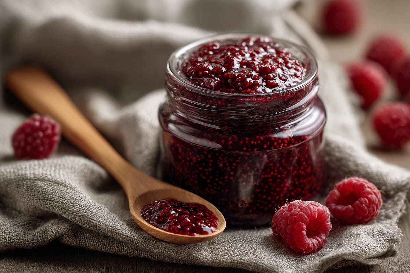 It’s made from whole raspberries, real lemon juice, and a fraction of the sugar—just enough to enhance flavor, not hijack your blood sugar. Chia seeds thicken it naturally, replacing commercial pectins and gums while adding fiber for blood sugar balance, omega-3s for metabolic health, and lasting satiety rather than a sugar spike.