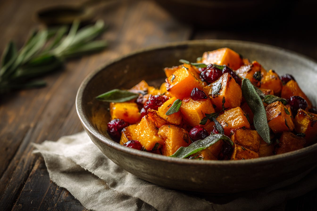Roasted Butternut Squash with Sage & Cranberries